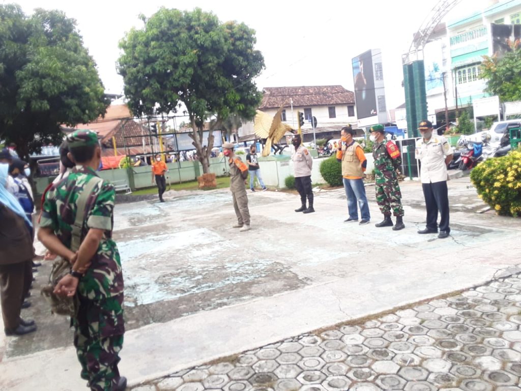 Kodim OKU – Babinsa Koramil 403- 02/Peninjauan Kodim 0403/OKU Serka Sumadi melaksanakan apel gabungan bersama TNI/POLRI dan diikuti oleh aparatur Pemkab OKU dan instansi terkait untuk melakukan himbauan pengetatan Prokes yang di gelar di Makoramil 403-12/ Baturaja, Kecamatan Baturaja Timur, Kabupaten OKU, Sabtu (18/12/2021)
