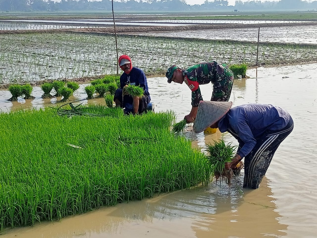 Sukseskan Swasembada Pangan, Babinsa Koramil 15/Belitang II Dampingi Petani Tanam Padi