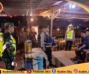 OKU – Anggota Babinsa Koramil 403-02/Peninjauan, Sertu Pirmansyah dan Sertu Abdulah Fikri bersama anggota Polsek Sinar Peninjauan dan Banser melaksanakan kegiatan patroli