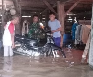Kodim OKU – Banjir akibat luapan sungai di Desa Riang Bandung dan Desa Karang Negara, Kecamatan Madang Suku II, Kabupaten OKU Timur,