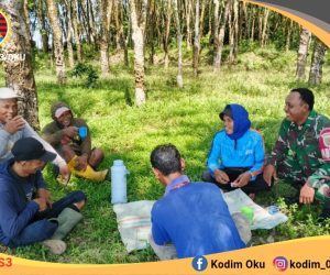 OKU Timur – Dengan suasana yang humanis Babinsa Koramil 403-04/Belitang Koptu Hariyanto, melaksanakan Komsos dengan petani karet dan mendengarkan keluhan para petani
