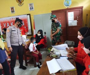 Kodim OKU – Babinsa Desa Muarajaya Sertu Edmardiansyah Anggota Koramil 403-01/Pengandonan melakukan Pendampingan dan Monitoring Vaksinasi untuk Anak-Anak Usia 6 Tahun sampai