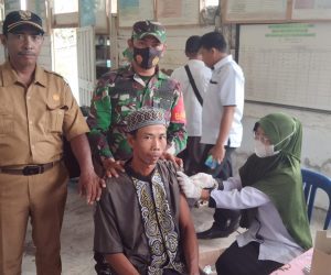 Kodim OKU – Dengan dilaksanakan nya serbuan vaksin Sinovac di wilayah Koramil 06/Cempaka Kodim 0403/OKU, Babinsa Koramil 06/Cempaka Kopda Tukiman mendampingi proses