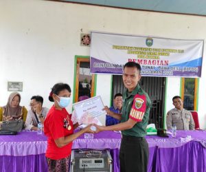 Kodim OKU – Babinsa Koramil 13/Lubuk Batang Kodim 0403/OKU Serka Zainal Abidin kawal pembagian BLT Desa Markisa, Babinsa melakukan pendampingan dalam rangka