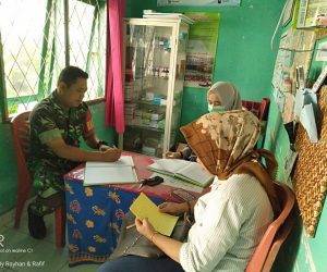 Kodim OKU – Babinsa Koramil 13/Lubuk Batang, Kodim 0403/OKU Kopda Nurul melaksanakan kegiatan Komsos dengan Nakes di Puskesmas Lubuk Batang, Kecamatan Lubuk