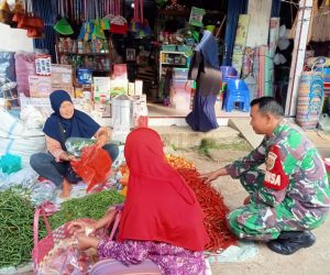 Kodim OKU – Serma Sobirin Babinsa Koramil 14/SS III, jajaran Kodim 0403/OKU melaksanakan pengecekan ketersediaan harga sembako secara langsung di pasar tradisional