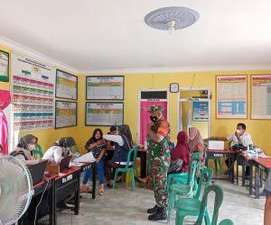 Kodim OKU – Anggota Koramil 14/SS III, Kodim 0403/OKU Sertu Sumarno selalu aktif mendukung kegiatan Serbuan Vaksinasi dalam rangka percepatan penanganan pandemi