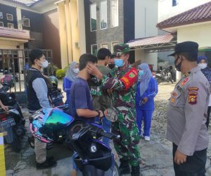 Kodim OKU – Babinsa Koramil 403-13/Lubuk Batang menggelar patroli Pemberlakuan Pembatasan Kegiatan Masyarakat (PPKM) dan membagikan masker untuk warga yang melintas di
