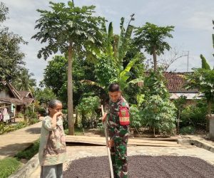 OKU – Babinsa Koramil 09/MDK, Kodim 0403/OKU Serka Mukhlisin membantu salah satu warganya di Desa Dusun Tengah, Kecamatan Muaradua Kisam, Kabupaten OKU