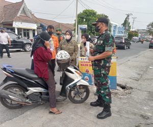 Kodim OKU – Dalam masa Pemberlakuan Pembatasan Kegiatan Masyarakat (PPKM), Babinsa Koramil 13/Lubuk Batang Serda Fioner Bakti bersama dengan pihak Kecamatan dan