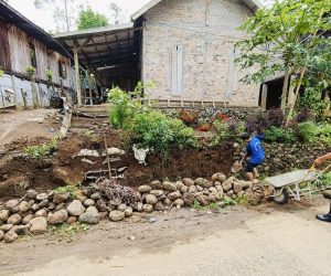OKU Selatan, BERITAS3.com – Babinsa Koramil 403-09/Muara Dua Kisam Kodim 0403/OKU Serka Salahuddin, gotong royong bersama warga masyarakat memperbaiki parit jalan yang