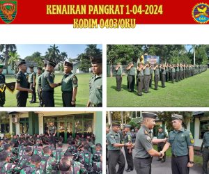 OKU – Kodim 0403/OKU gelar upacara bendera rutin mingguan dilanjutkan dengan upacara kenaikan pangkat periode 1 April 2024 yang diikuti oleh Para