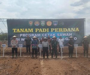 OKU Timur, BERITAS3.com – Dandim 0403/OKU Letkol Arh Yusuf Winarno, S.I.P., M.Han., hadiri Kegiatan penanaman perdana tabur benih padi secara serentak di