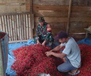 OKU – Babinsa Koramil 403-07/Simpang Sertu Suprayogi melaksanakan Komsos ke pengepul Cabe bapak Ari di Desa Tunas Jaya, Kecamatan Buana Pemaca, Kabupaten