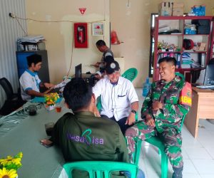 OKU – Guna menjalin kemanunggalan TNI dengan Rakyat, Babinsa Koramil 02/Peninjauan Kodim 0403/OKU Serka Kasmidi Melaksanakan Komsos bersama Perangkat desa di kantor