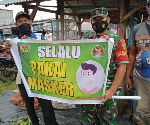Kodim OKU – Koramil 02/Peninjauan memantau kegiatan masyarakat dalam pelaksanaan PPKM level 2 di pasar tradisional, Kecamatan Peninjauan. Jumat (19/08/2022). Babinsa Koramil