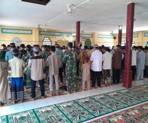Kodim OKU – Dalam rangka meningkatkan keimanan dan ketaqwaan dalam beribadah, Satgas TNI Manunggal Membangun Desa (TMMD) Ke-117 Kodim 0403/OKU melaksanakan Sholat
