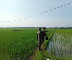 OKU – Sertu Sumarno Babinsa anggota Koramil Koramil 14/SS III kodim 0403/OKU melaksanakan kegiatan Pendampingan Hanpangan (Ketahanan Pangan) Pemupukan padi dilahan Pertanian