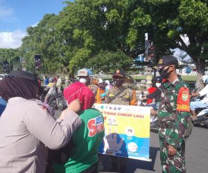 Kodim OKU – Babinsa Sertu Zainal Abidin, bersama tiga pilar melaksanakan Kegiatan PPKM Level-2 dengan memberikan Edukasi serta himbauan tentang Protokol Kesehatan