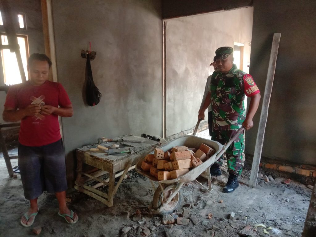 OKU – Wujud kepedulian terhadap masyarakat di wilayah teritorial, Koptu Sarbani Babinsa Koramil 15/Belitang II Kodim 0403/OKU melaksanakan giat bakti TNI membantu warga rehab rumah warga desa binaan di Desa Purwodadi, Kecamatan Belitang Mulya, Kabupaten OKU Timur, Minggu (03/08/2025)