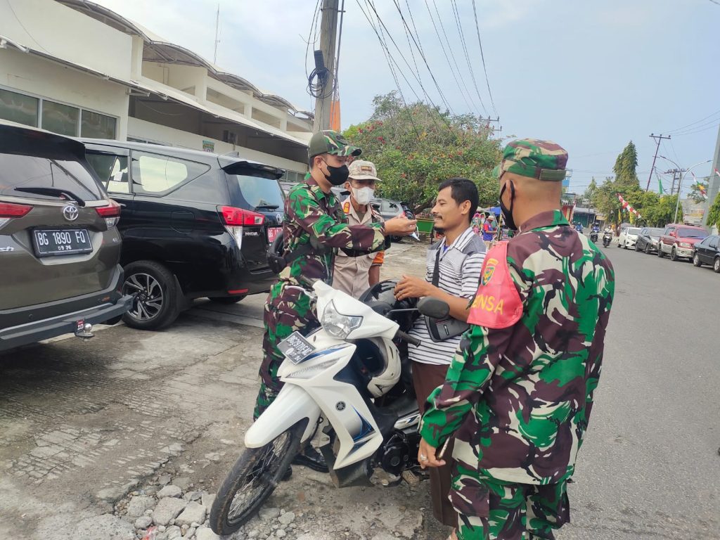 Kodim OKU – Babinsa Serda Suryadi, bersama tiga pilar melaksanakan Kegiatan PPKM Level-2 dengan memberikan Edukasi serta himbauan tentang Protokol Kesehatan pada warga masyarakat yang beraktivitas di Taman Kota Baturaja, Sabtu (06/08/2022).