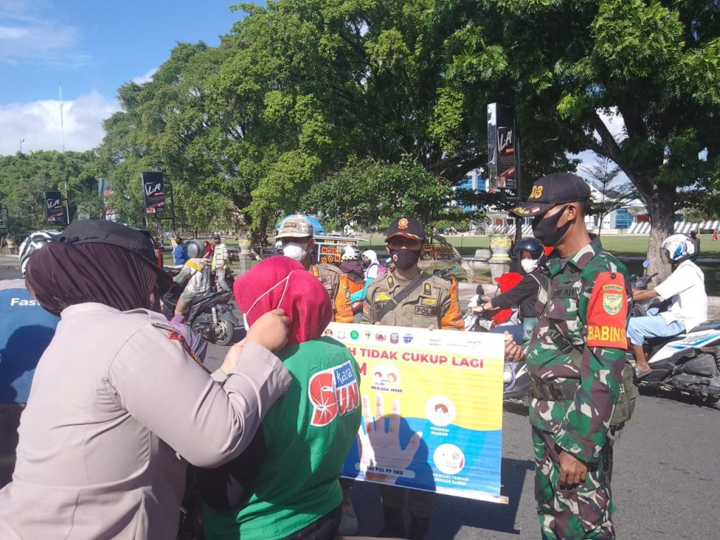 Sertu Zainal Abidin, bersama tiga pilar di Taman Kota Baturaja untuk melakukan kegiatan pendisiplinan PPKM Level-2 kepada para pengunjung dan pedagang di atas trotoar serta koordinasi dengan pengelola Taman Kota Baturaja untuk tetap mematuhi protokol kesehatan sebagai upaya untuk pencegahan penularan virus Covid-19.