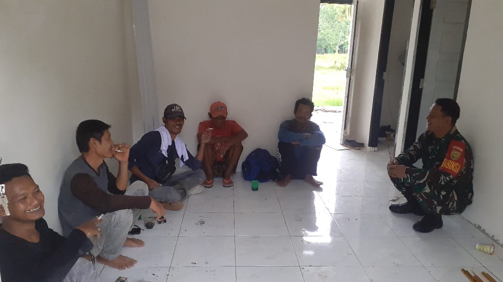 dalam kesempatan tersebut seperti yang dilakukan oleh Personel Bintara Pembina Desa (Babinsa) turun ke wilayah binaan untuk melaksanakan kegiatan Komunikasi Sosial (Komsos) bersama dengan Masyarakat yang berprofesi sebagai buruh harian dan juga anak muda dalam bekerja sebagai buruh harian.