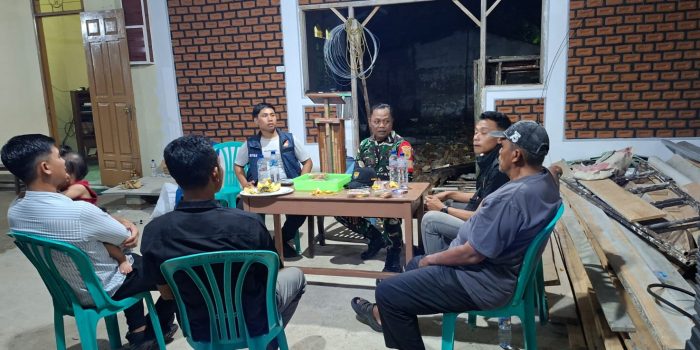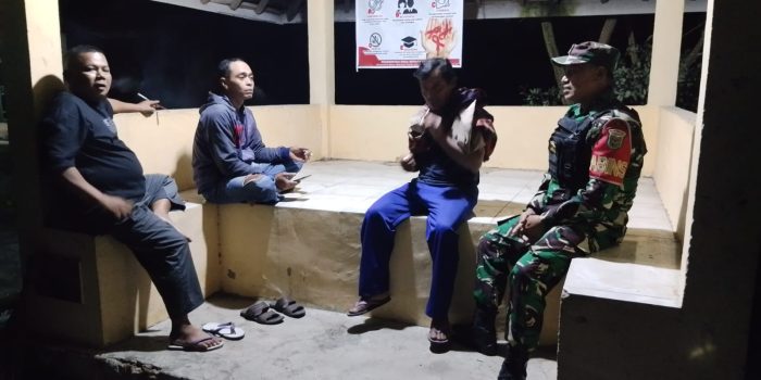 OKU Timur – Dalam rangka meningkatkan keamanan wilayahnya, Babinsa Koramil 403-04/Belitang Kodim 0403/OKU, Serda Giyarno bersama aparat keamanan, Linmas dan tokoh masyarakat
