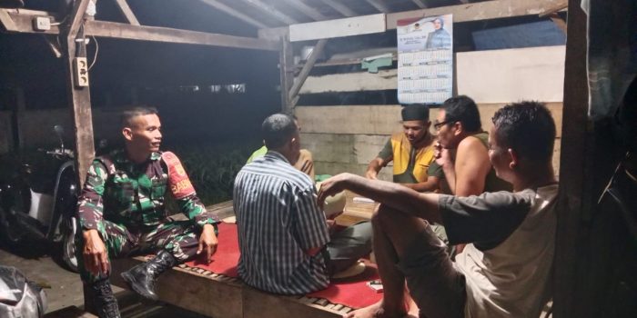 OKU – Dalam rangka menjaga keamanan lingkungan serta menjalin komunikasi sosial aktif, Babinsa Koramil 403-13/Lubuk Batang Kodim 0403/OKU, Koptu Nurul bersama warga