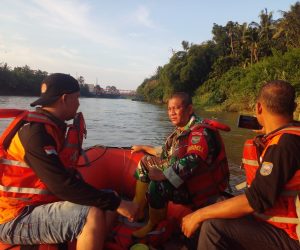 Babinsa Koramil 403-12/Baturaja, Kodim 0403/OKU Bersama BPBD Bantu Pencarian Anak Hanyut
