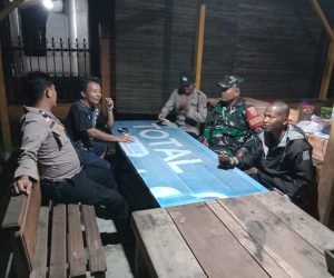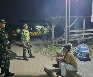OKU Timur – Babinsa Koramil 403-05/Buay Madang Kodim 0403/OKU, Serma Nanang, Sertu Handoko, Serda Adirin melaksanakan Siskamling dan Patroli bersama Linmas serta