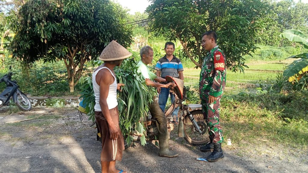 Seperti yang dilakukan oleh Babinsa Serda Hermanto, ia membantu Bapak Wahab salah satu peternak sapi mencari rumput pakan ternak di Desa Air Baru, Kecamatan Runjung Agung, Kabupaten OKU Selatan, Jumat (21/02/2025)