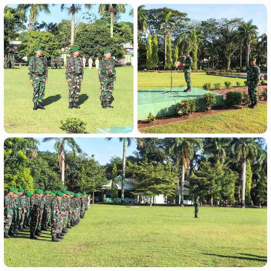 OKU – Seluruh Prajurit dan PNS Kodim 0403/OKU melaksanakan upacara bendera mingguan yang rutin digelar setiap hari Senin, bertempat di lapangan Upacara Makodim 0403/OKU Jl. A. Yani Km 6 Kemelak Bindung Langit, Kecamatan Baturaja Timur, Kabupaten OKU, Senin(13/04/2026)