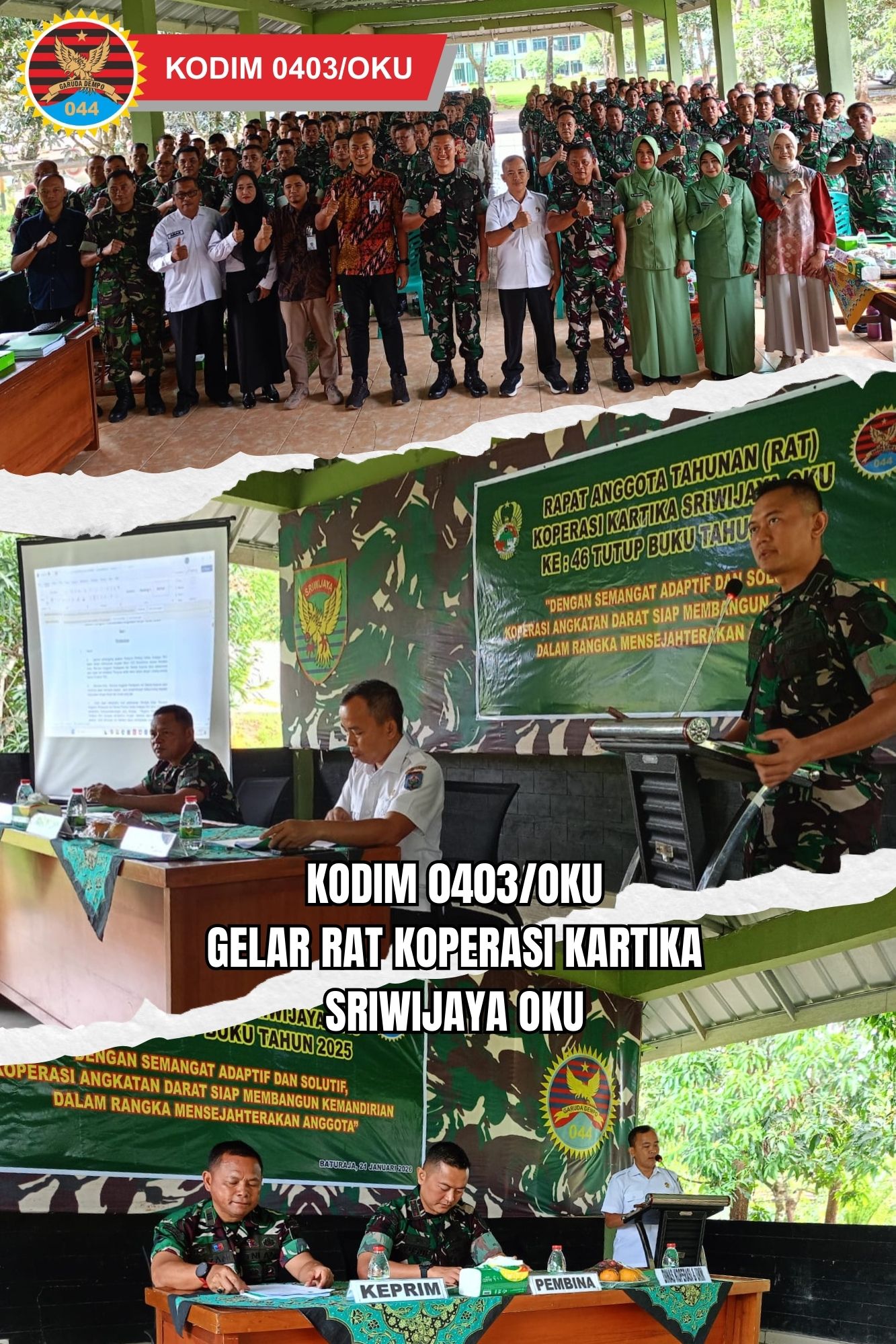 Berkaitan dengan hal tersebut, Kodim 0403/OKU telah menyelenggarakan Rapat Anggota Tahunan Primer Koperasi (RAT PRIMKOP) Kartika Sriwijaya OKU tutup buku Tahun 2025, dengan tema “Dengan Semangat Adaptif dan Solutif Koperasi Angkatan Darat Siap Membangun Kemandirian Dalam Rangka Mensejahterakan Anggota”