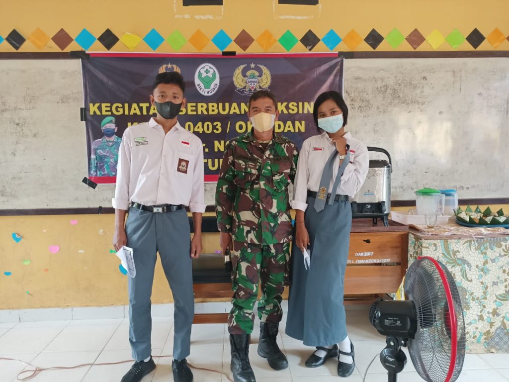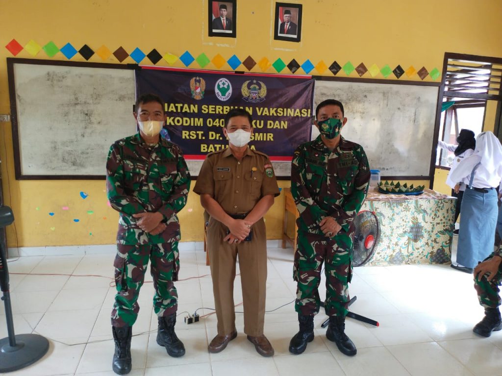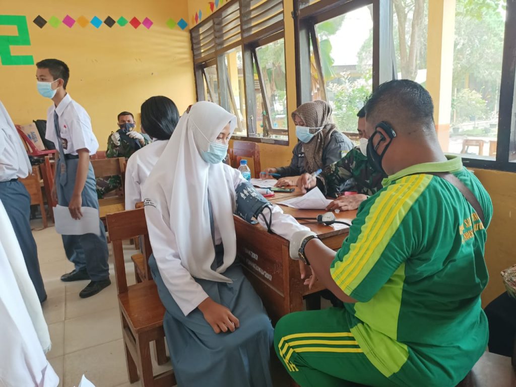 Kodim OKU – Dengan Selalu menerapkan Protokol Kesehatan Komando Distrik Militer (Kodim) 0403/OKU bersama Rumkit TK. IV 02.07.05 dr. Noesmir Baturaja kembali lakukan serbuan Vaksin TNl dosis l bertempat di ruang belajar SMA Negeri 2 OKU, Batumarta II, Kecamatan Lubuk Raja, Kabupaten OKU, untuk pelajar dan masyarakat sekitar wilayah OKU, Senin (11/10/2021)