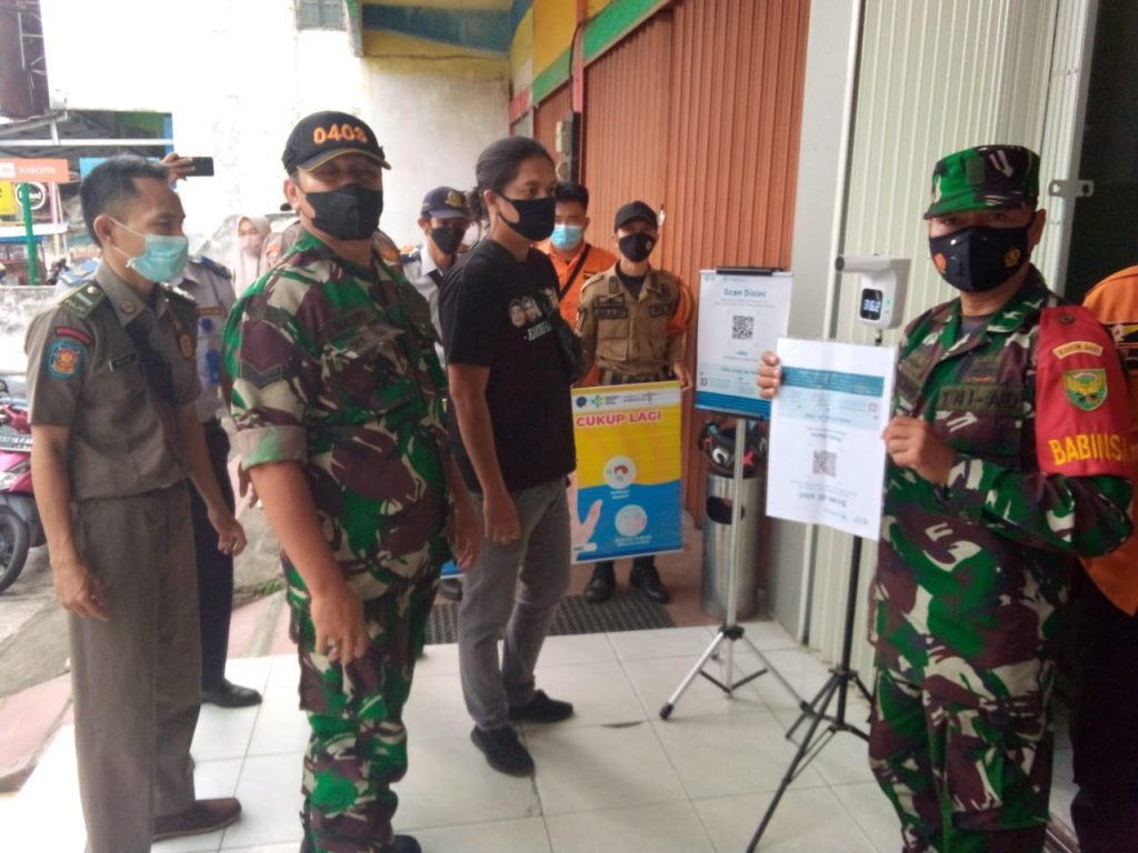 Kodim OKU – Pandemi covid-19 belum juga berakhir, untuk itu personil Babinsa Koramil 13/LB, Kodim 0403/OKU terus melakukan operasi PPKM untuk melakukan himbauan prokes kepada warag di pasar baru Baturaja Kecamatan Baturaja Timur, Kabupaten OKU, Rabu (26/01/2022)