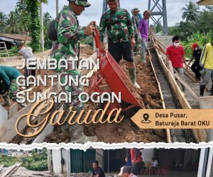 Impian Masyarakat Desa Pusar, TNI Percepat Pembangunan Jembatan Gantung Sungai OGAN