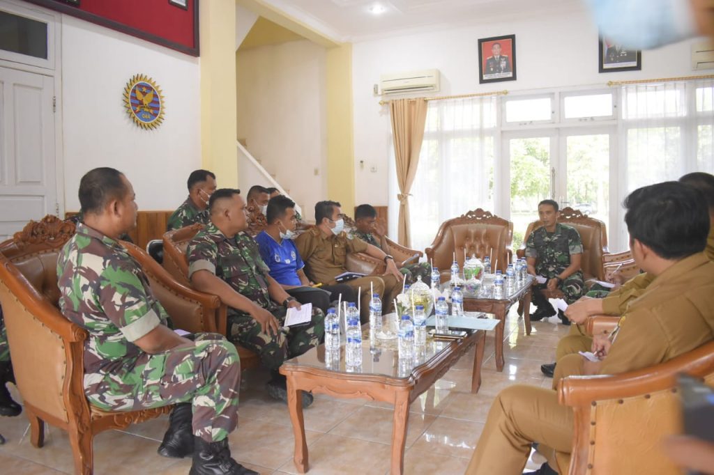 pengurus Persatuan Sepakbola Seluruh Indonesia (PSSI) OKU yang diwakili Brigmand, OKU Timur diwakili Sertu Widodo dan OKU Selatan Andi Irawan, S.STP, M.Si dipimpin langsung Dandim Letkol Inf Ferizal R, S.I.P di Ruang Rapat Makodim Jalan A.Yani KM 4,5 Kemelak Bindung Langit, Kecamatan Baturaja Timur, Kabupaten OKU, Selasa (22/02/2022)