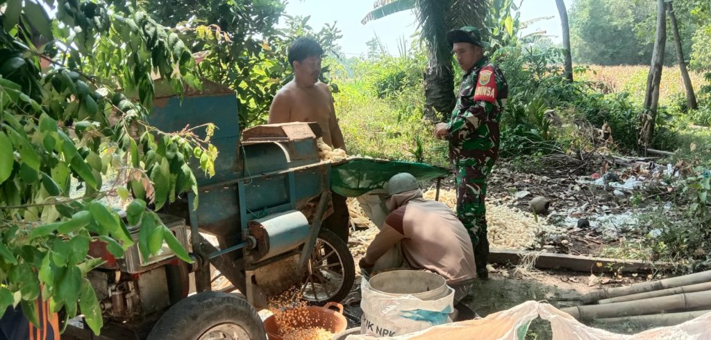 Semangat Babinsa Koramil 09/Muaradua Kisam Bantu Warga Pipil Biji Jagung