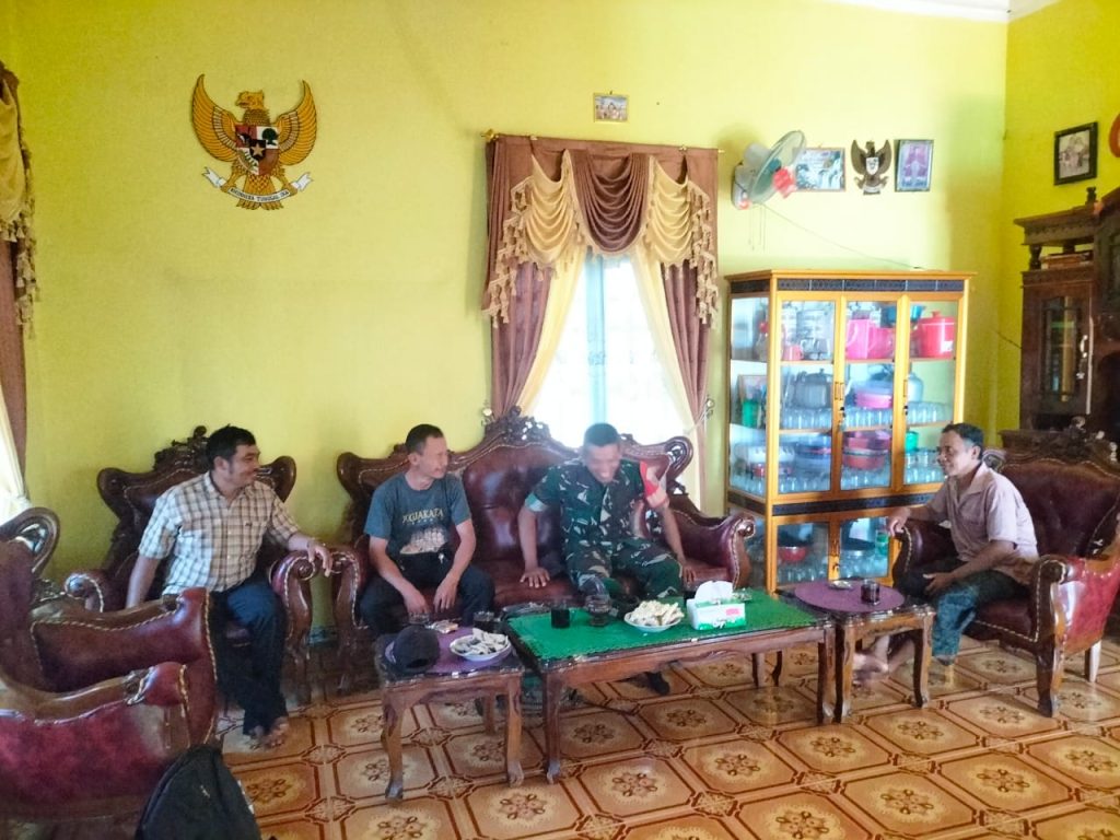 OKU – Guna meningkatkan hubungan kerja yang baik di wilayah binaan, Babinsa Koramil 14/SS III Kodim 0403/OKU Serda Suwardoyo melaksanakan komunikasi sosial (Komsos) bersama Kepala Desa dan warganya bertempat di Desa Harapan Makmur, Kecamatan Semendawai Timur, Kabupaten OKU Timur, Senin (18/08/2025)