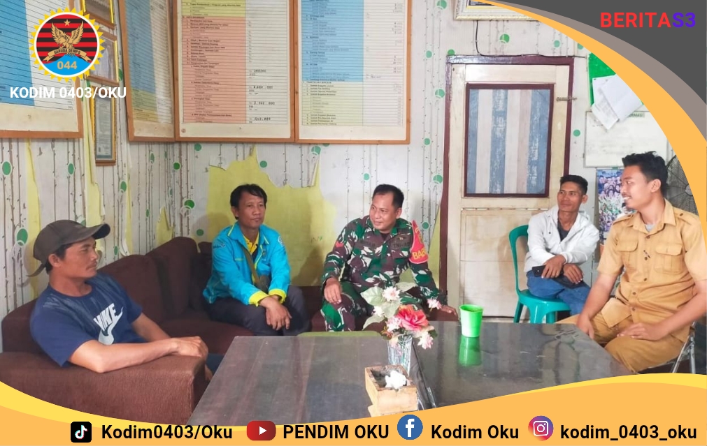 OKU Timur – Demi mewujudkan wilayah yang aman dan kondusif Babinsa Koramil 403-06/Cempaka, Kodim 0403/OKU Koptu Adi Suprayoko melaksanakan Komsos dengan Kades dan staf di kantor Desa Kangkung Kecamatan Cempaka Kabupaten OKU Timur, Jumat (3/10/2025).